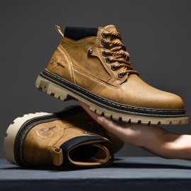 Men's Trendy Lace Up High Top Boots, Classic Riding Boots With Fleece